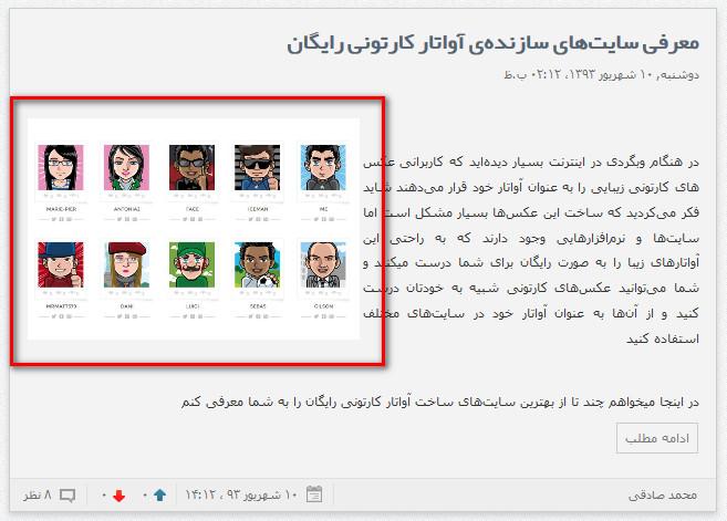 در پایان این نکته را متذکر میشوم که گاهی اوقات عواملی باعث می شوند که تصاویر مطلب به درستی نشان داده نشوند در این مواقع با تغییری جزئی در کد CSS قالب وبلاگتان مشکل حل میشود